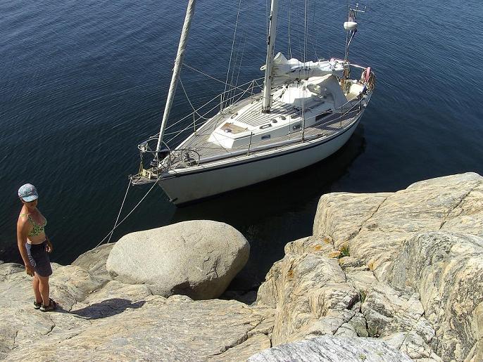 Bericht 234 juniLangs Zweedse scheren In Denemarken hebben we al veel eilanden gezien en bezocht, maar in Zweden hebben ze nog oneindig veel meer eilanden en eilandjes! Er liggen er duizenden voor de Westkust van Zweden, ongeveer vanaf Gotheborg en dan verder naar het Noorden tot de grens met Noorwegen. Met varen is het goed opletten, want ze zijn allemaal van knetterhard graniet, en daar wil je niet mee in aanraking komen. Het is echter heel leuk varen tussen al die kleine en grotere eilanden, of scheren, zoals ze ook genoemd worden. Velen zijn bewoond, soms is er een heel dorp op, soms maar een enkel huis of vuurtoren, maar heel veel zijn ook volstrekt verlaten, of komen maar net boven water. Of sommigen bulten komen net niet boven water uit en dan moet je natuurlijk helemaal goed opletten. Onder Zweden is het populair om aan zo'n eilandje aan te leggen: lijn op de kant, ankertje achteruit en je ligt prinsheerlijk. Dat is op heel veel plaatsen mogelijk, als het direct aan de kant diep is, maar ook weer niet te diep om te kunnen ankeren. Om de beste plekjes te kunnen vinden, zijn er complete gidsen beschikbaar (een soort topo's, voor de klimmers onder de lezers). ![]() Wij hebben ook zo'n gids aangeschaft en liggen nu op een prachtig plekje. Vanaf de boot zo'n eilandje verkennen is iedere weer een verrassing. Dit eilandje heeft heel wat blokken die de sportklimmers ook zouden waarderen. Paulien kan nog even het goede gevoel onderhouden. ![]() Vanuit Varberg zijn we met een tussenstop in 'Krogstadsudde' (wie verzint zo'n naam?) naar Gotheborg gevaren. Vooral het tweede stuk was het weer fantastisch zeilweer. Windkracht 3 a 4, dit keer uit het Oosten, zodat we die lekker mee hadden. Stralende zon en prima temperatuur. We lieten de stuurautomaat de ingeprogrammeerde route varen, zodat het voor ons volop luieren en genieten was. In Gotheborg meerden we toevallig af in de haven waar ook allerlei zeilwedstrijdteams hun basis hadden. Dat betekende een hele gezellige drukte met trainende teams, coaches in speedboten erachteraan, oefenwedstrijdjes en professioneel ogende zeilers op de wal in de weer met prachtige boten en bootjes (van Optimistjes tot skiffs en 10 meter sportboten). Boodschappen doen was nog even lastig, want Gotheborg is uitgestrekt en ingesteld op autogebruik. Maar met een trammetje en een lift van een vriendelijke Zweed hadden we binnen het uur een nieuwe elektronische kaart (van de Zweedse scheren, je wil niet zonder) en verse tomaten, enzo. Voorlopig kunnen we er weer even tegenaan. Homepage |